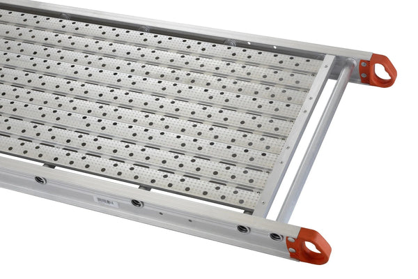 This Louisville 20 foot plank is able to hold a 500lb load capacity and has a 24″ width. This 2-person plank features ergonomic easy-grip molded handles/rungs, reinforcing web braces, and slip-resistant decking. The Louisville P22420 2-Person plank meets or exceeds the safety standards set by ANSI and OSHA.