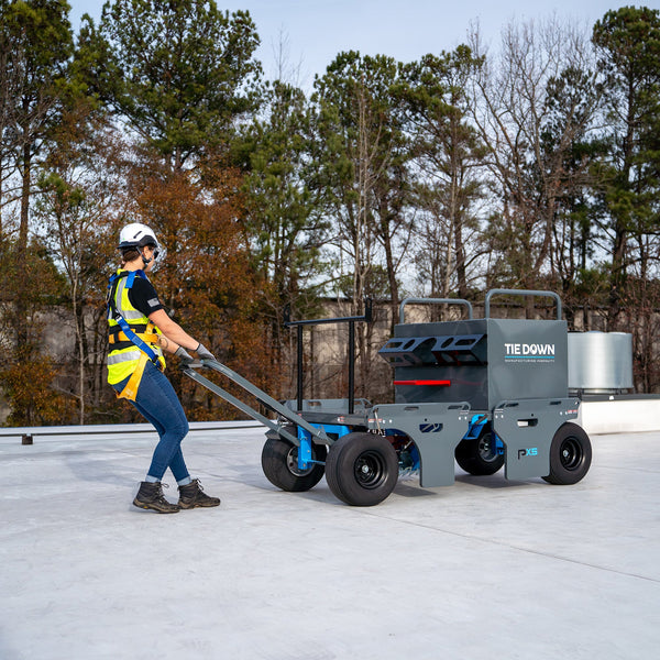 Tie Down Safety manufactures the best-in-class mobile fall protection systems. Contractors often need safety solutions that offer versatility without added difficulties. The revolutionary Penetrator X5 Sentinel ships ready to use and safely protects up to seven workers at a time. Weighing less than 1300 lbs., the X5 Sentinel provides fall arrest safety for 5 workers and an additional 2 workers in restraint, all at same time. In addition, a useful toolbox is provided to keep your gear protected and ready to go. The Penetrator X5 Sentinel can be used on concrete, or EPDM and TPO roofing applications. When it’s time to relocate, our premium non flat tires allow for quick relocation so our customers can resume their work without sacrificing productivity. Tie Down Safety maintains high standards and quality control through quality raw materials and components made in the USA.